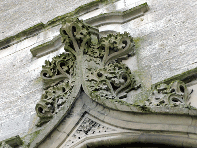 décor en bon état au dessus de la porte centrale du clocher