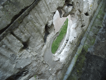 Un autre problème, la détérioration de la pierre ... qui part en plaques (desquamation) ou qui devient de la poudre (pulvérulence)