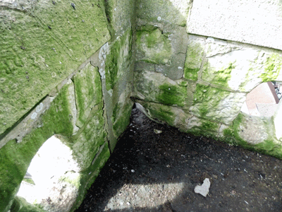 Les parties inférieures des piédroits de la baie Ouest sont fracturées en plusieurs endroits.