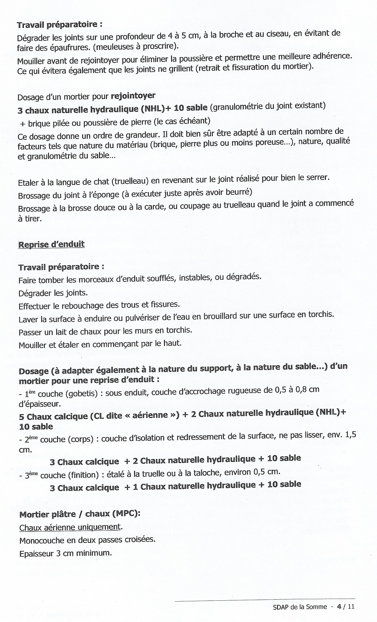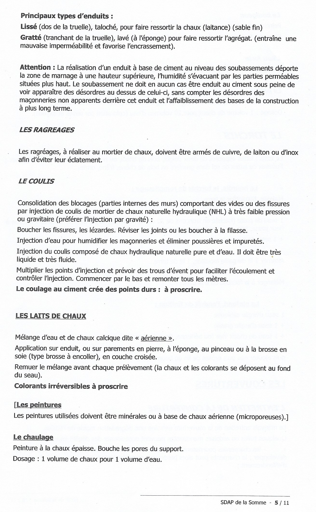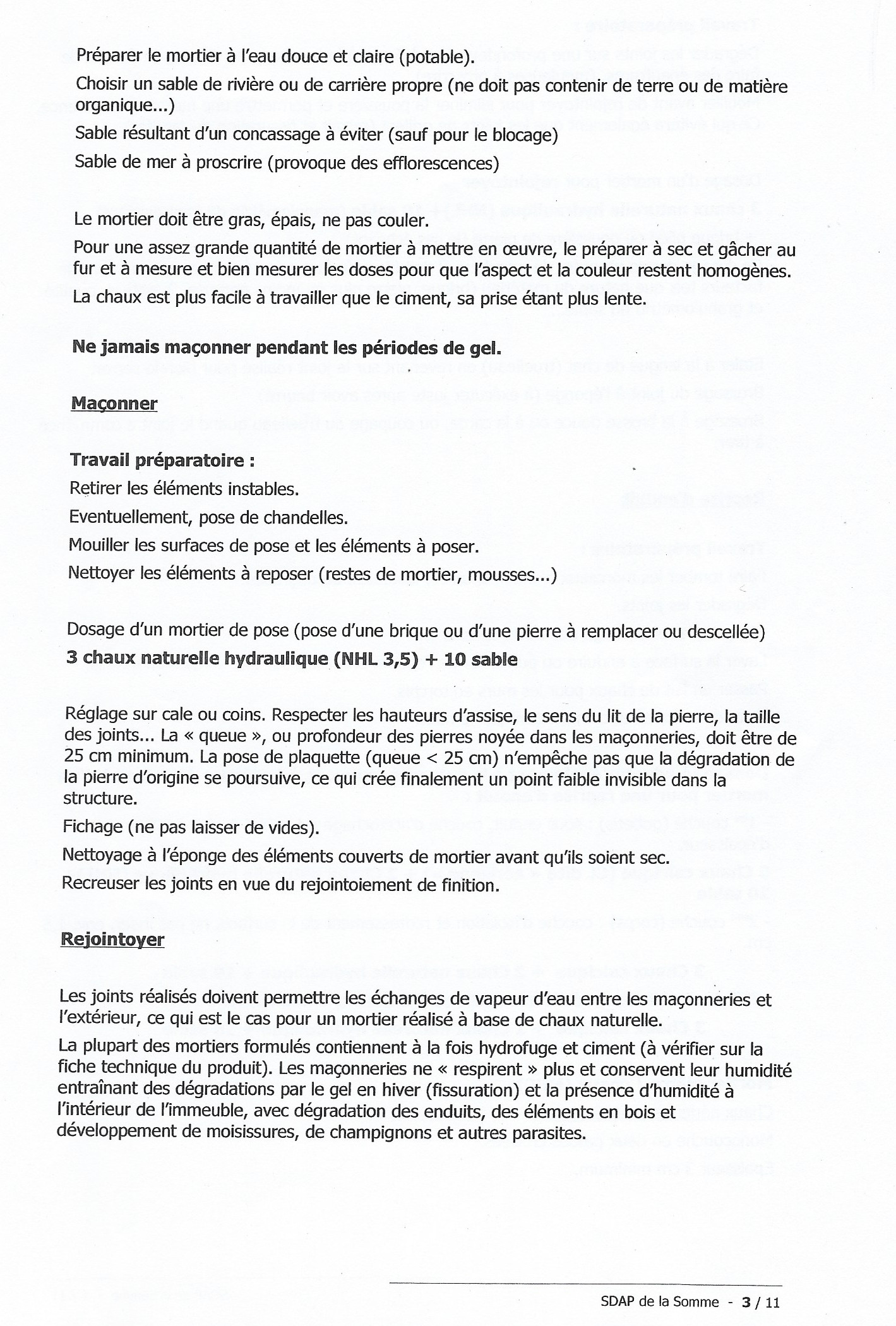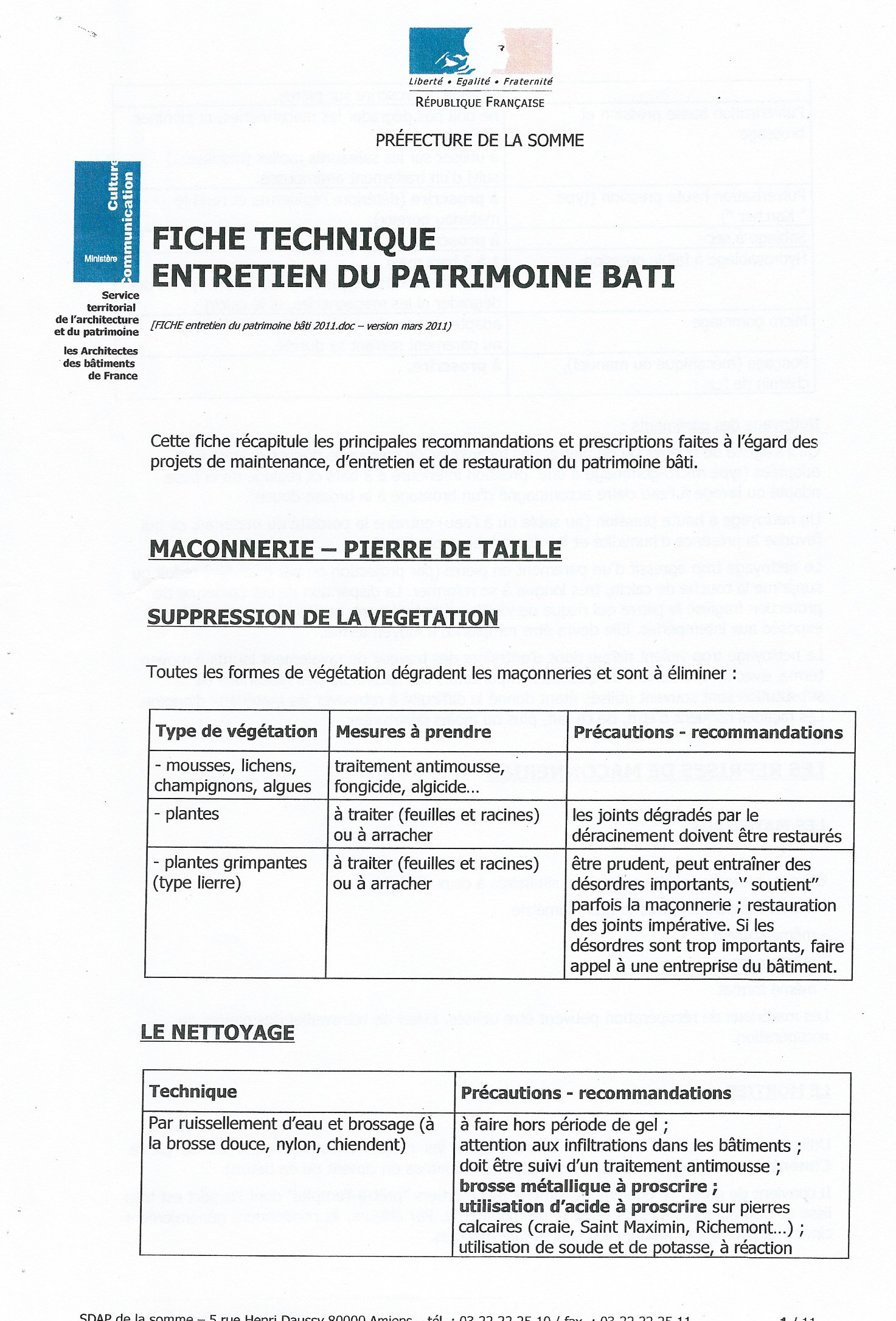 Fiches techniques de l'entretien du patrimoine bâti éditées par le SDAP de la Somme: