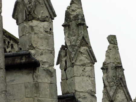 Ces derniers sont très dégradés avec une maçonnerie fracturée et rongée. Certains éléments de pinacles semblent instables.
