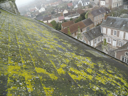 Les appuis des baies et les lamiers de contreforts sont colonisés par le lichen.