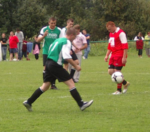Après ce but, les deux équipes se créent quelques occasions et à la 30 ème minute, Sébastien Courtin égalise d'un joli tir tendu après avoir passé la défense adverse en revue. Mais l'AS Talmas reprend l'avantage peu avant la pause sur un ballon mal donné en retrait à Romain, notre gardien, qui le laisse filer, impuissant, entre ses jambes. A la mi-temps, les deux équipes rejoignent les vestiaires sur le score de 2 à 1 pour Talmas.