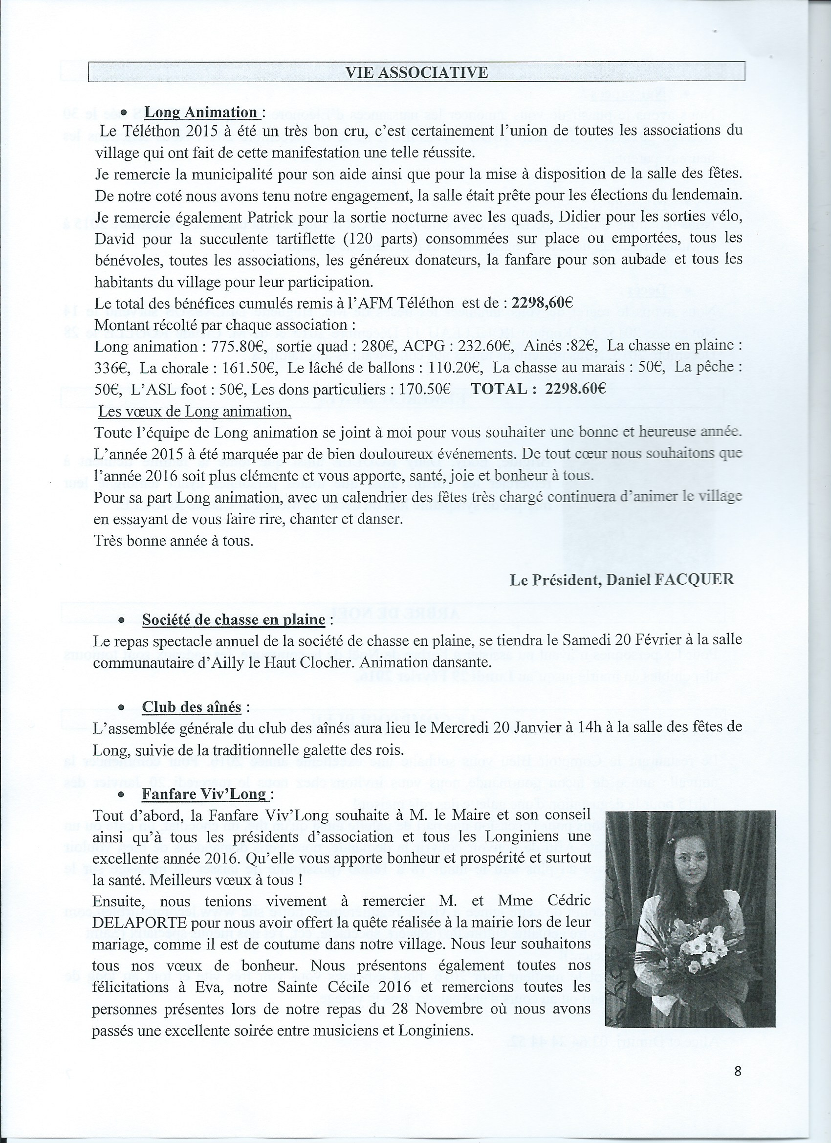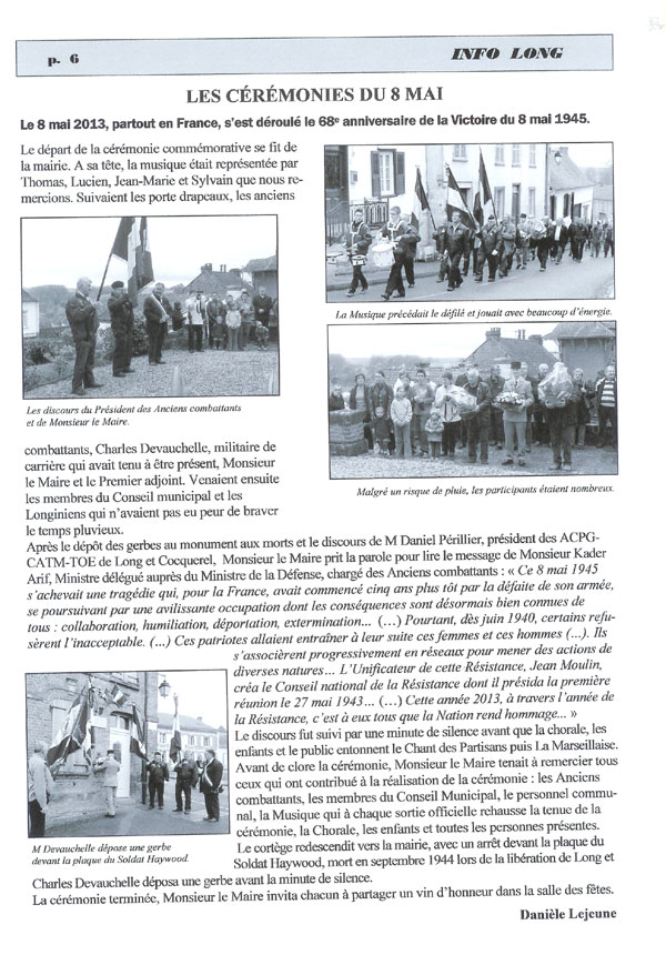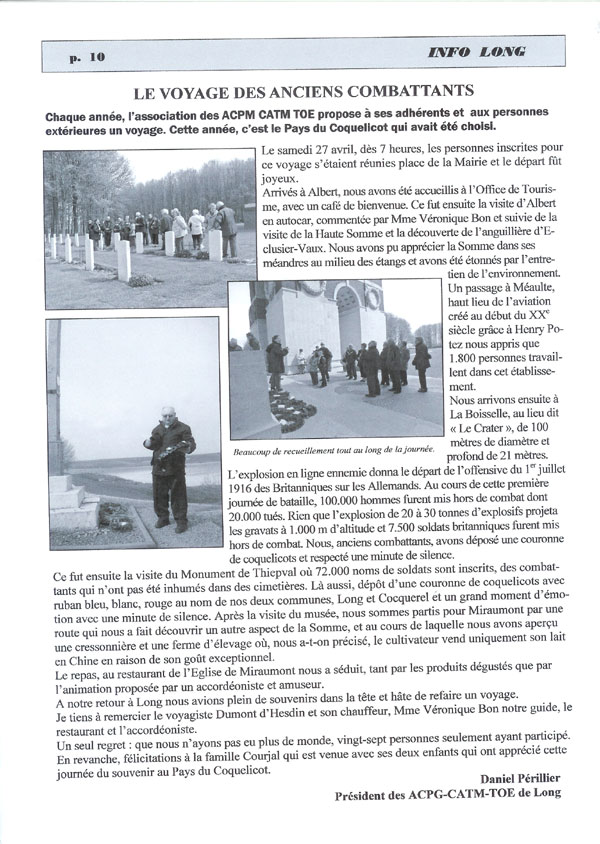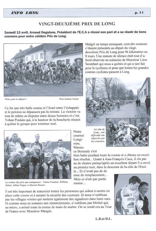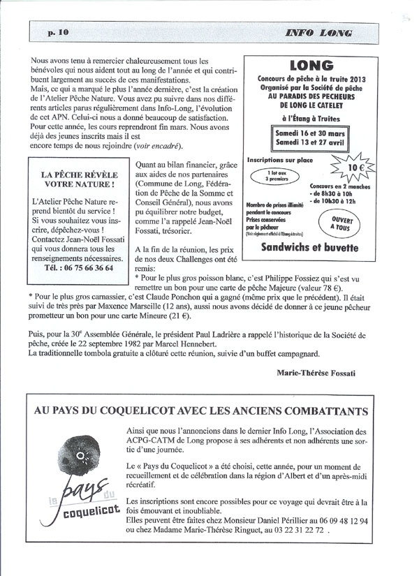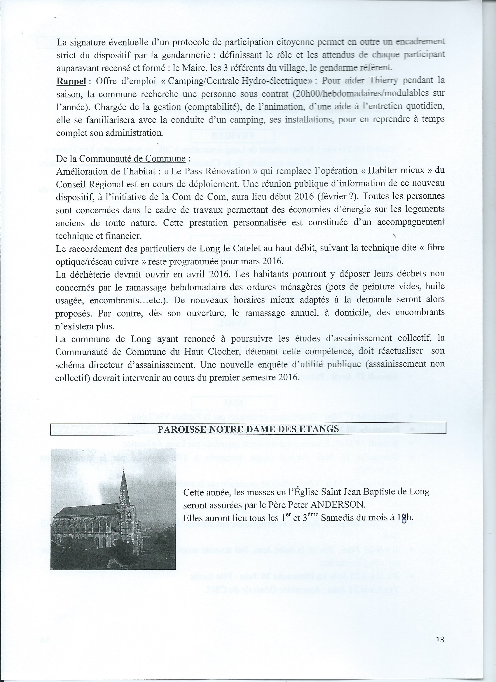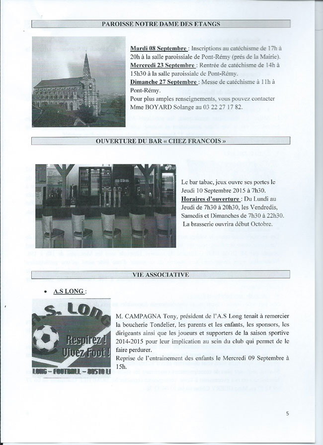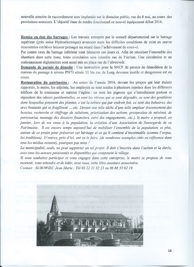 Tout d’abord, le dimanche 7 juin, le F.C. Long organisait son traditionnel tournoi, remettant en jeu le challenge Marcel Papin. Une fois de plus, il a connu un vif succès, bien que se déroulaient le même jour, les élections européennes et les communions solennelles et malgré un orage qui a un peu contrarié la fête, en fin de journée. La réussite de cette journée a été tant sur le plan sportif que sur celui de la convivialité. Je félicite les dirigeants du club et à leur tête, le Président, ainsi que tous les bénévoles, pour la bonne organisation de ce tournoi et surtout pour le maintien du souvenir et de la tradition… Et puisque l’occasion m’est donnée, je salue le club dans son ensemble, pour l’excellente saison réalisée, chez les petits comme chez les grands, avec, bien sûr, une mention particulière, pour la montée en quatrième division. Cette montée entraîne quelques aménagements, au niveau du terrain ; la commune sera aux côtés du club, pour qu’ils soient réalisés dans les meilleurs délais. Juin, c’est aussi le moment de la fête locale. Les manèges, loteries, tirs, autos tamponneuses ou autos scooters comme disent certains, ont, pendant trois jours, animé le cœur du village. Un grand merci aux majorettes (les Hirondelles), à la fanfare Viv’Long et au Club des jeunes pour l’animation proposée, le dimanche après midi, ce qui a permis de réunir un grand nombre de Longiniens sur la place de la mairie et de perpétuer l’esprit de cette fête locale… Dommage qu’il y ait eu quelques débordements. Et puis, nous avons vécu une « Saint Jean Baptiste » exceptionnelle, avec une très belle cérémonie religieuse dédiée à la lumière, animée par la chorale de Long au grand complet et par Geoffrey Chesnier à l’orgue, suivie d’une procession où les jeunes ont tenu une place importante, encadrés par les membres de la paroisse et accompagnés par Monsieur l’Abbé, les élus, la fanfare et les porteurs de flambeaux. Après que Monsieur l’Abbé ait béni le feu, le bûcher s’embrasa très vite (il est vrai que nous traversons une période de sécheresse et le bois était particulièrement bien sec). Une immense flamme est montée vers le ciel, caractérisant à merveille notre feu de Saint Jean et dégageant une intense chaleur… Le public, particulièrement nombreux, était comblé, même si, côté rue du Château, il a dû s’éloigner à cause des flammèches… Le service de sécurité veillait et tout s’est bien terminé… Nous avons eu, une fois encore, les honneurs de la télévision (France 3 et TF1) et bien sûr de la presse locale, qui a bien couvert l’évènement… Là aussi, au nom de toute la Municipalité, un grand merci à toutes celles et tous ceux qui se sont investis, dans la préparation du bûcher, dans sa surveillance, dans la préparation des cérémonies et dans leurs animations, dans la sécurité, dans la communication, pour que cet évènement soit à la hauteur de sa réputation. Ce fût le cas, bravo à tous. Pour en terminer avec les manifestations, je souhaite féliciter les enfants de l’école primaire de Long qui, sous l’égide de leurs enseignants, nous ont concoctés une superbe fête des écoles qui avait pour thème « les voyageurs du monde ». Il y avait beaucoup de spontanéité et d’authenticité dans ce spectacle, et nous avons vraiment passé un bon moment… Maintenant, place aux vacances ! Avec le beau temps, malgré une conjoncture économique toujours aussi difficile, les choses ne semblent pas trop mal se présenter. Avril, mai et juin ont plutôt été bons sur le plan de la fréquentation, même si l’on note une baisse du côté du château. Les équipements d’accueil sont pratiquement prêts pour la haute saison touristique ; souhaitons qu’elle soit bonne, que les estivants soient le plus nombreux possible et que tous les évènements locaux qui vont être organisés tout au long de cette période estivale rencontrent le plein succès.