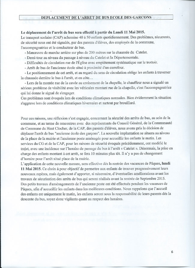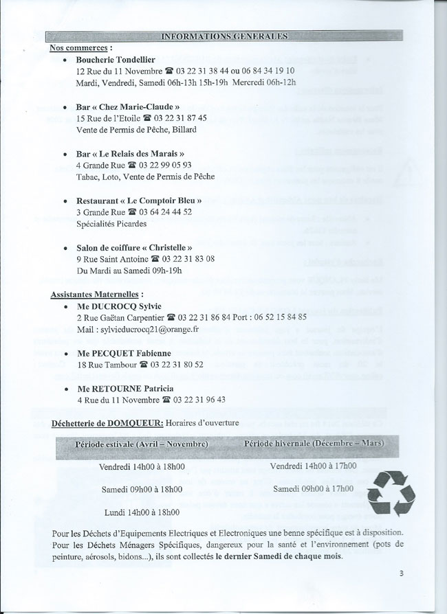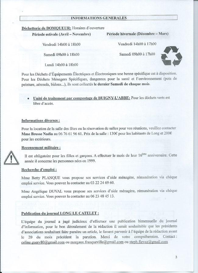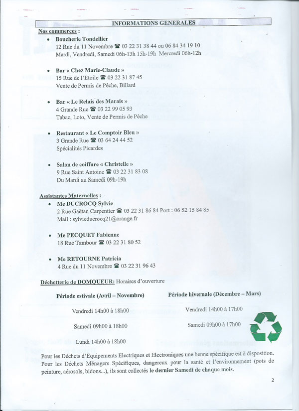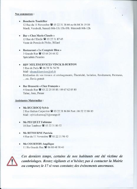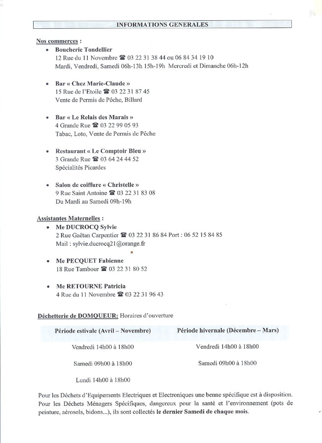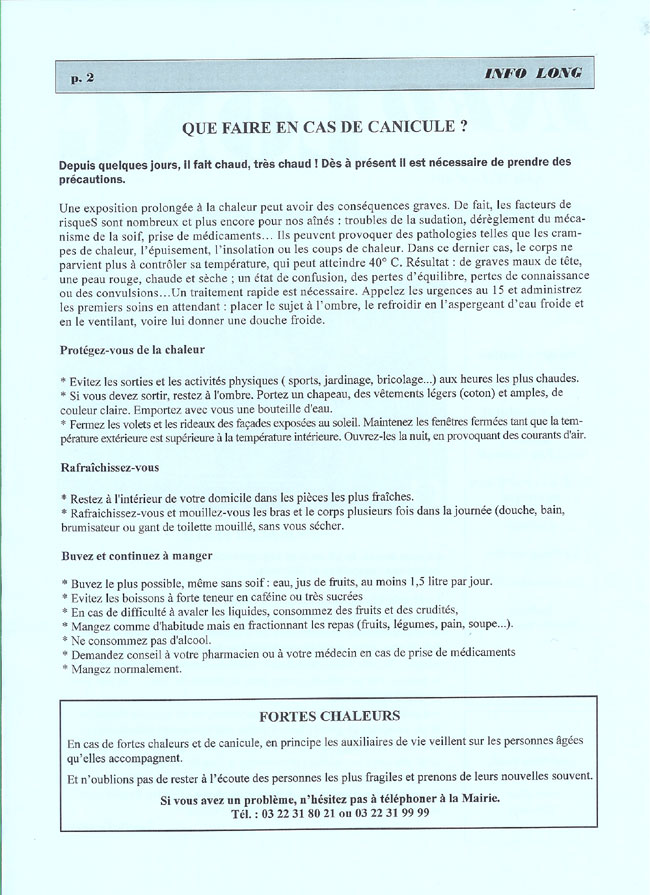 En cas de problème, ne pas hésiter à téléphoner à la Mairie.