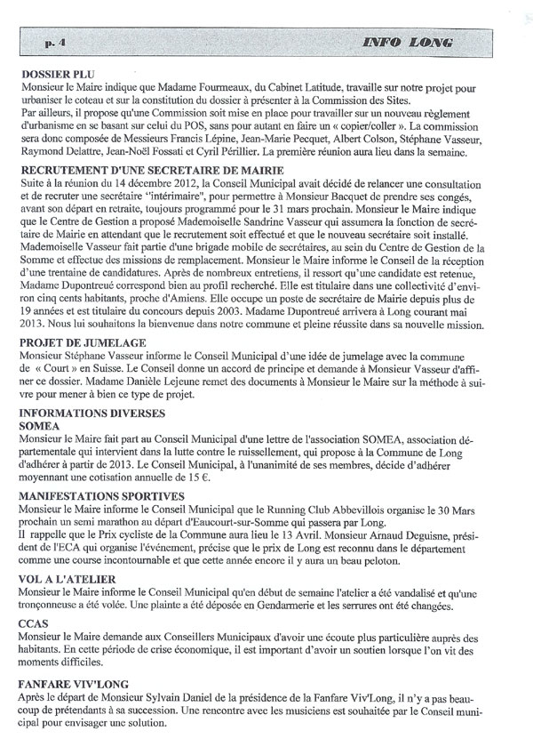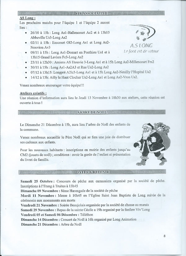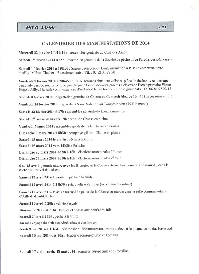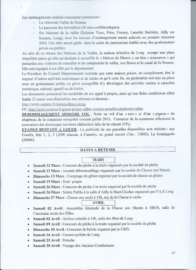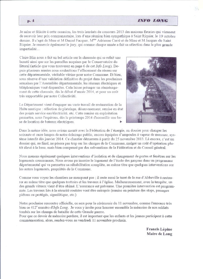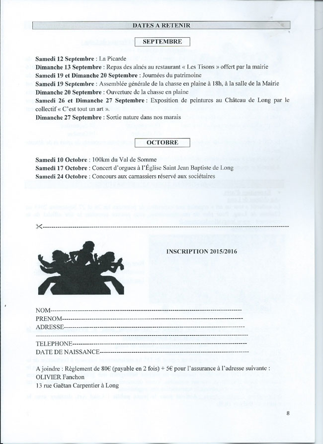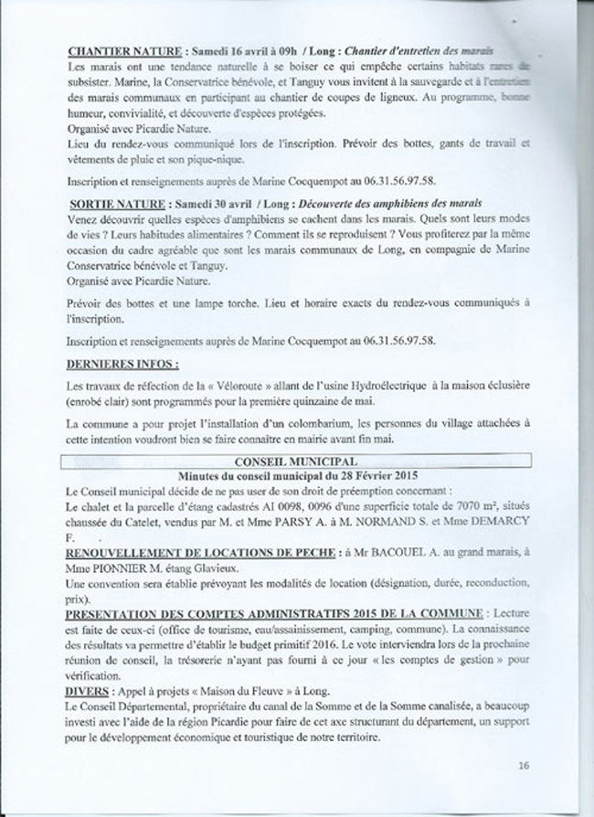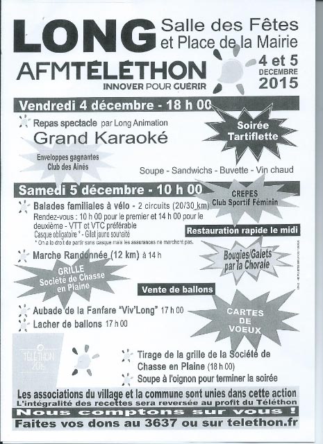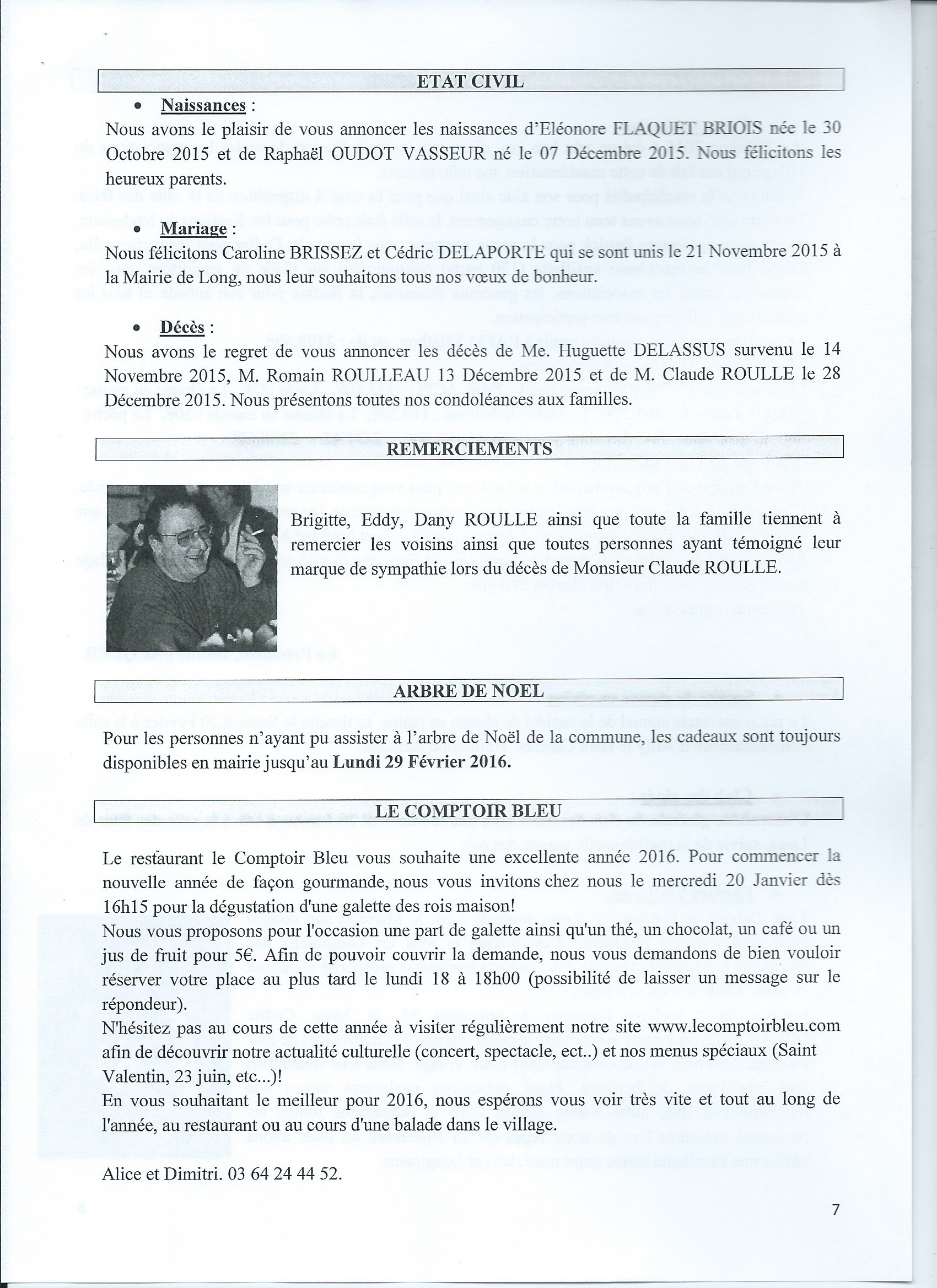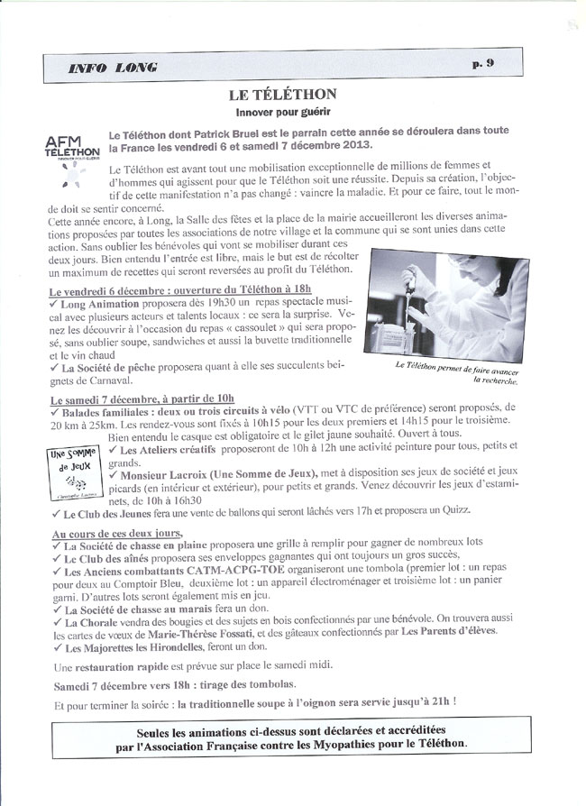 Nous souhaitons la bienvenue aux nouveaux habitants de Long et nous leur demandons de bien vouloir se rendre à la Mairie, du mardi au vendredi, de 11h à 12h et de 16h à 18h30 munis de leur livret de famille pour se faire inscrire. Cette démarche permet à la Commune de tenir à jour les différents états (population, jouets de Noël, colis des personnes âgées, charbon et fuel, rentrée des classes etc.). Alors si vous venez d'arriver à Long, n'oubliez pas de passer à la Mairie : c'est une démarche importante pour nous.