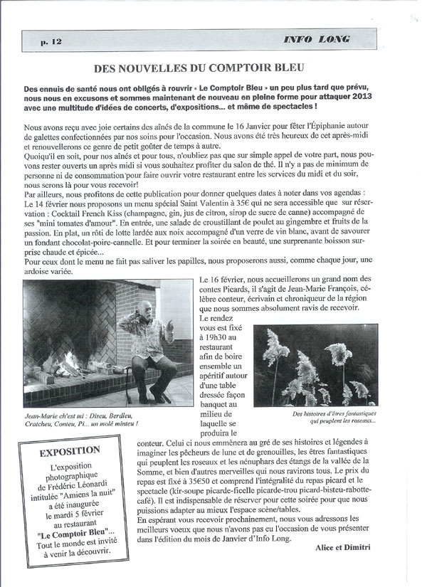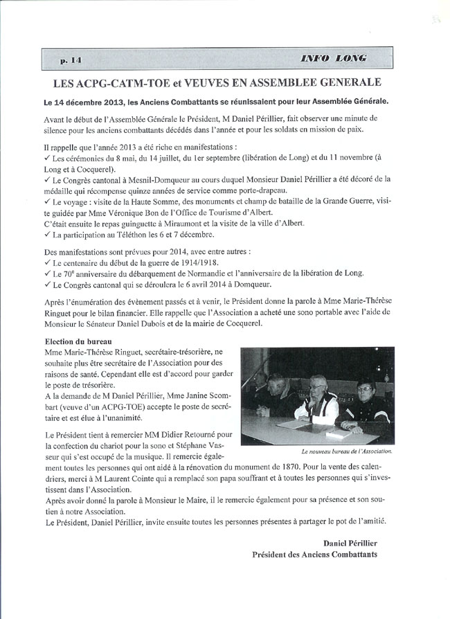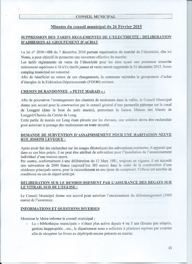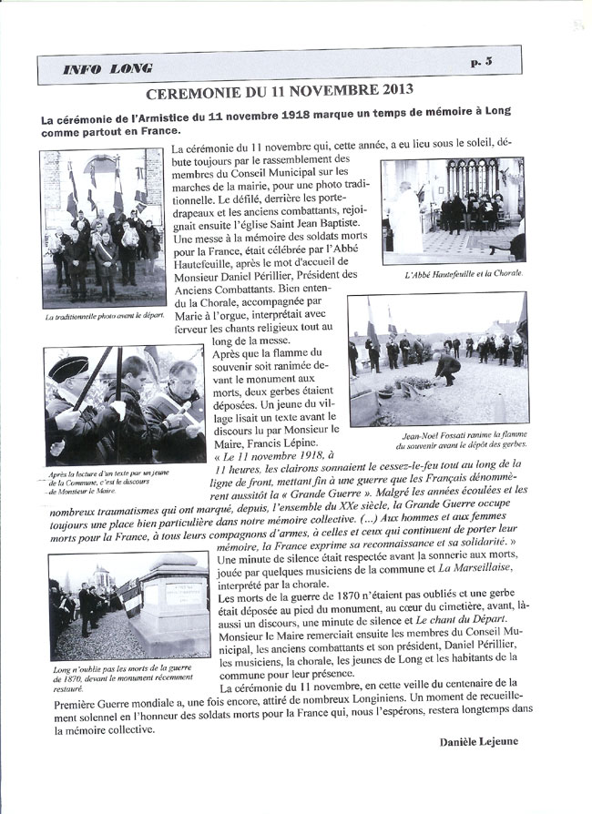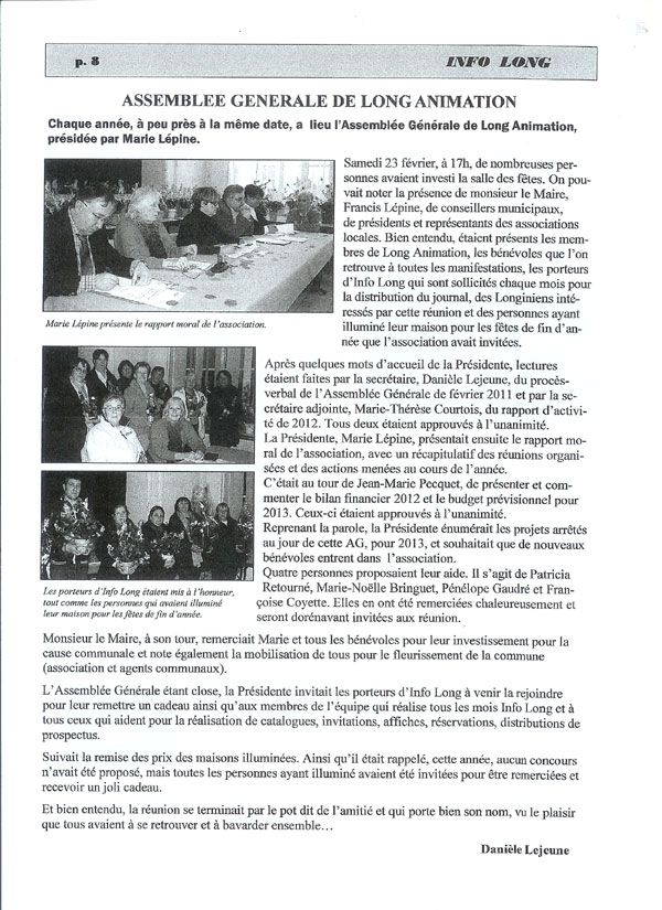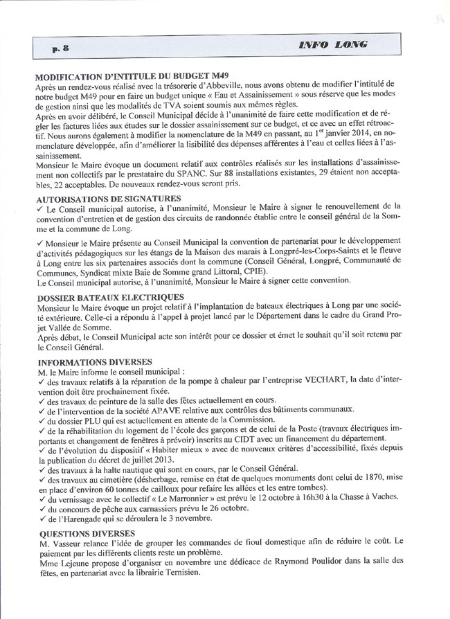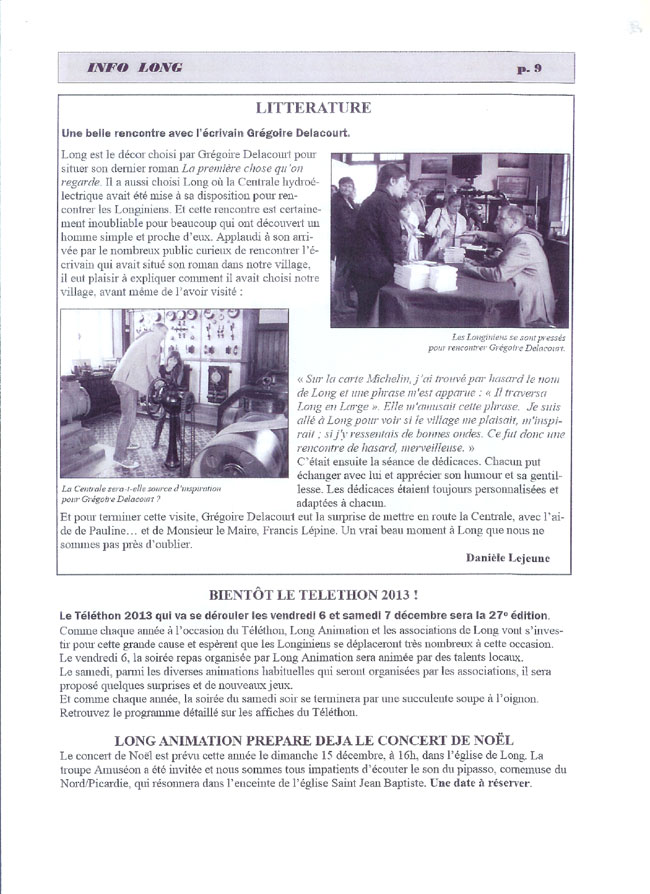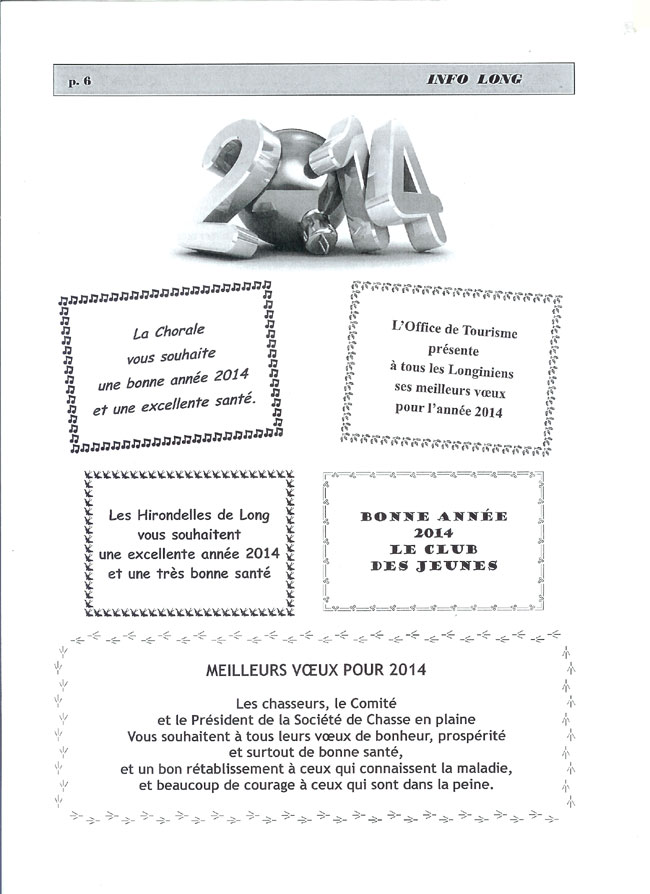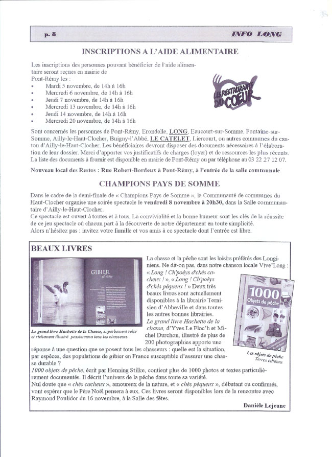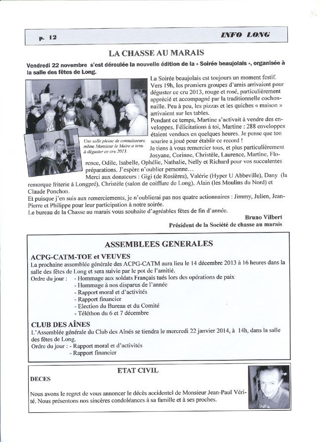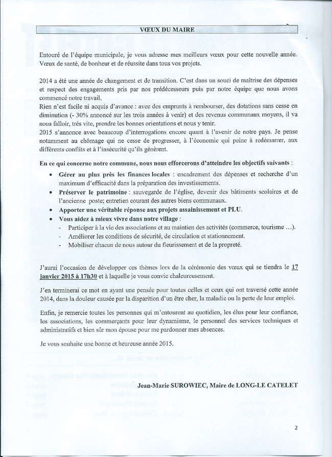 Nous souhaitons la bienvenue aux nouveaux habitants de Long et nous leur demandons de bien vouloir se rendre à la Mairie, du mardi au vendredi, de 11h à 12h et de 16h à 18h30 munis de leur livret de famille pour se faire inscrire. Cette démarche permet à la Commune de tenir à jour les différents états (population, jouets de Noël, colis des personnes âgées, charbon et fuel, rentrée des classes etc.). Alors si vous venez d'arriver à Long, n'oubliez pas de passer à la Mairie : c'est une démarche importante pour nous.