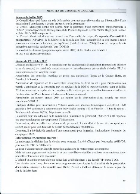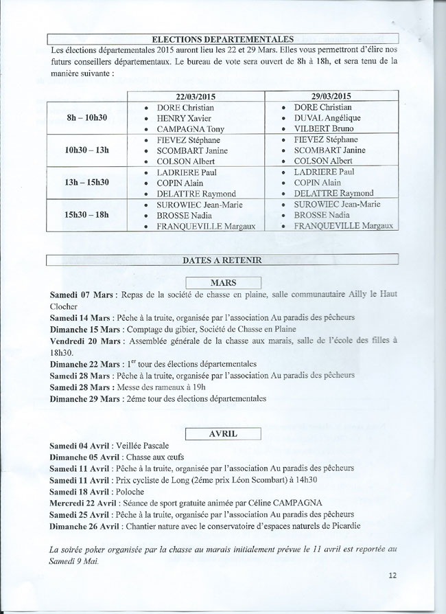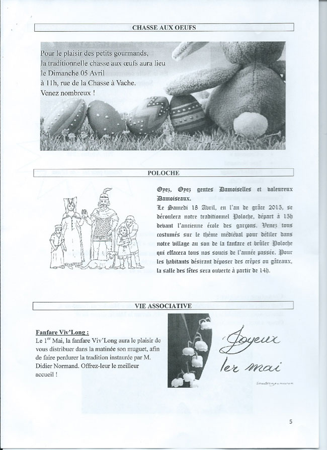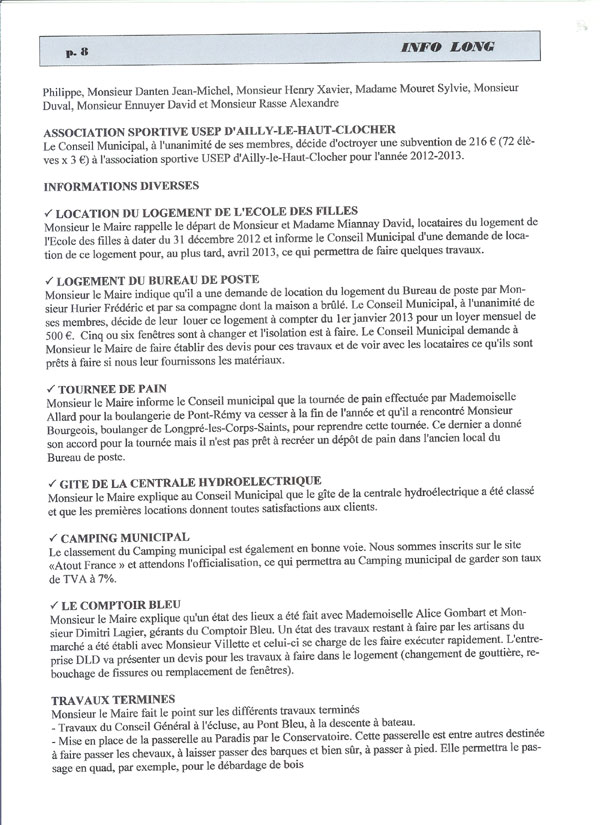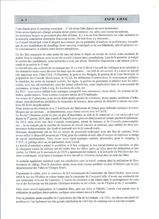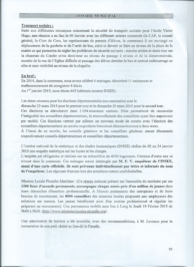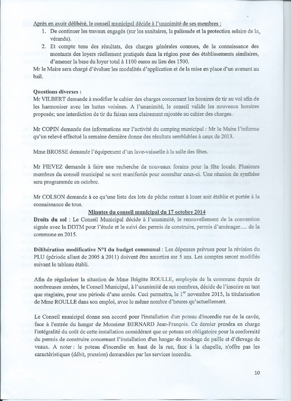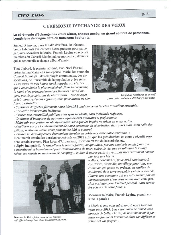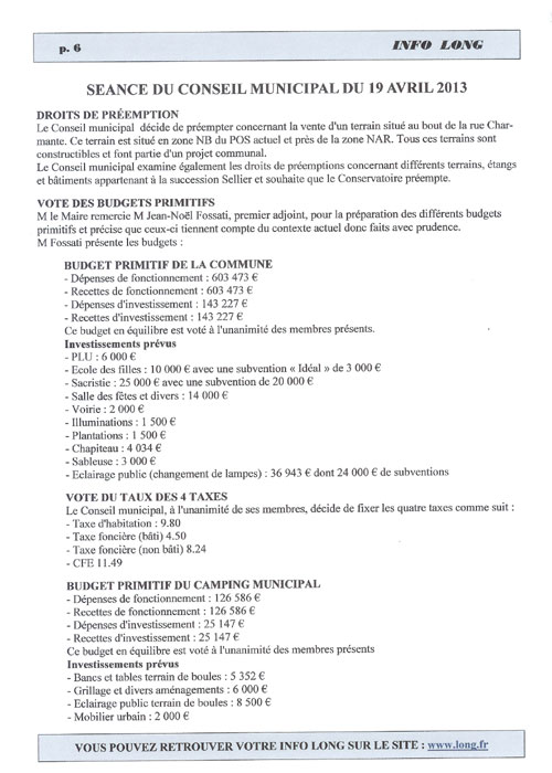 Le Conseil Municipal quant à lui, aura à plancher sur certains dossiers dans les prochaines semaines, pour traiter les réponses à notre appel d’offre sur la gestion de l’Eau, pour donner une suite au passage des services du Conseil Général dans la commune, le 19 juin dernier, pour avancer sur les locations des lots de pêche et pieds de hutte et pour évoquer la Commission départementale de la coopération intercommunale… Et, bien sûr, le Conseil Municipal vous donne rendez vous, les 13 et 14 juillet, pour célébrer ensemble la fête nationale. Des surprises vous y attendent… Francis Lépine