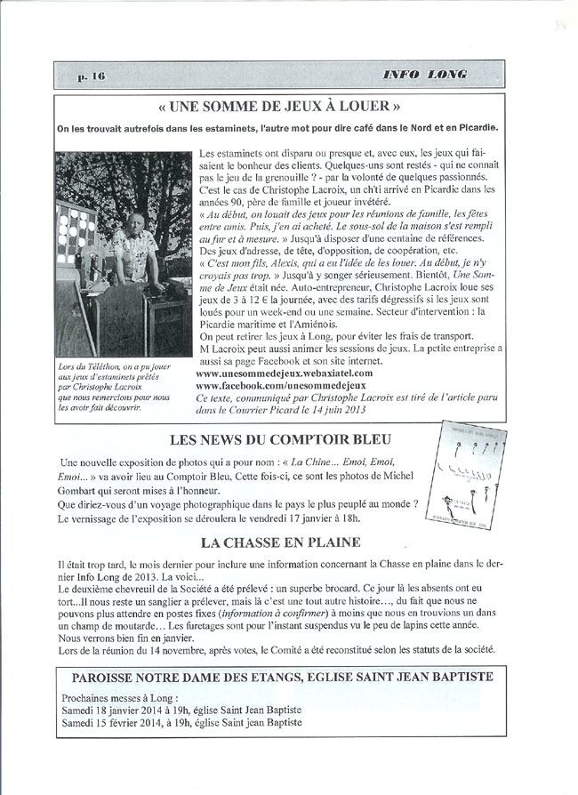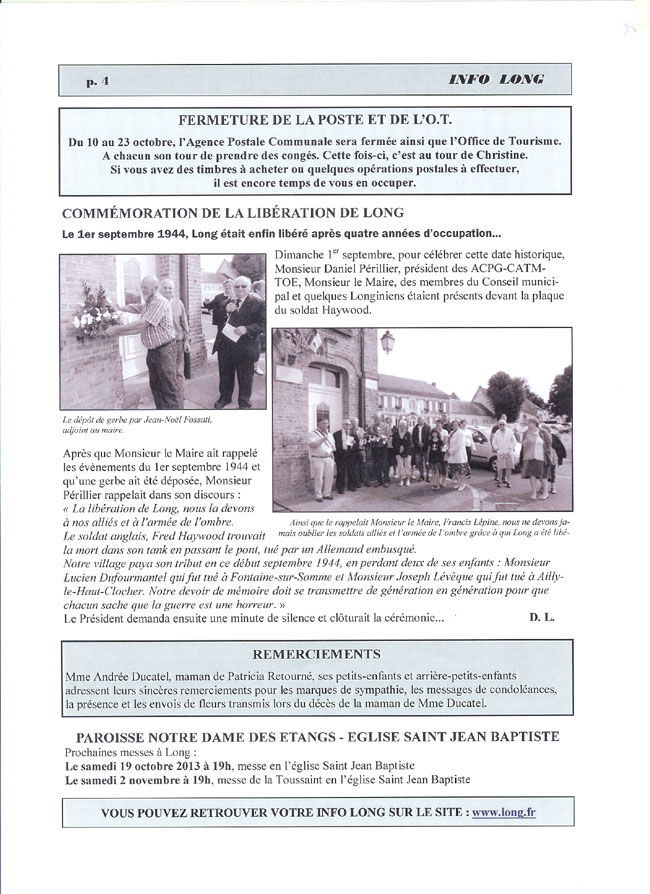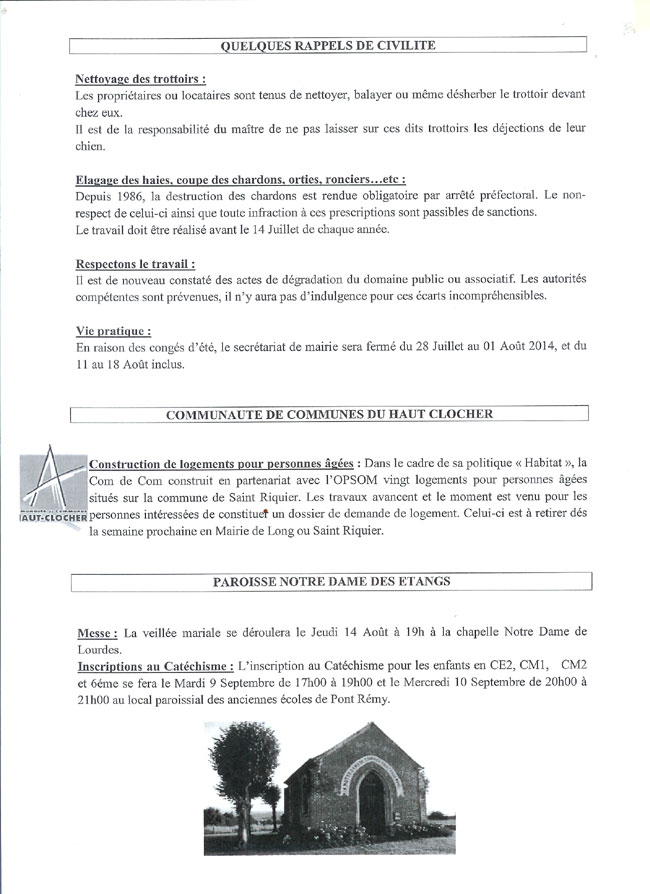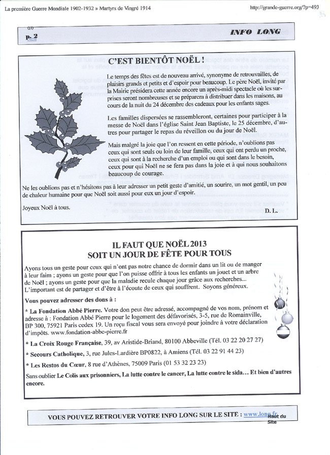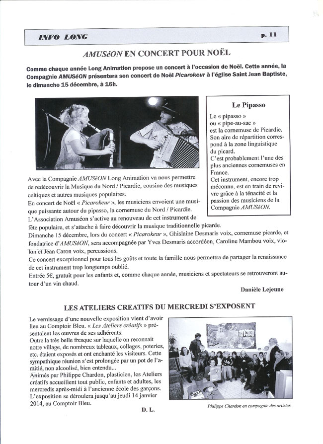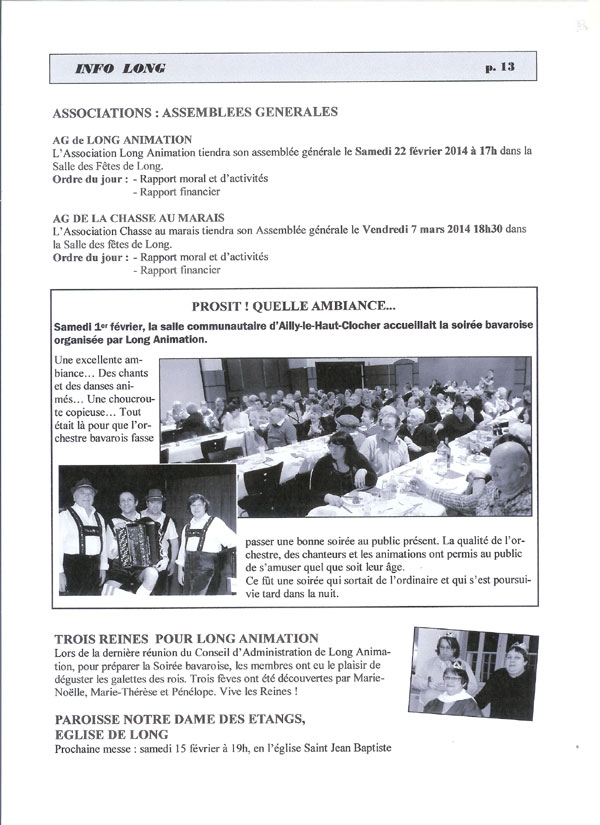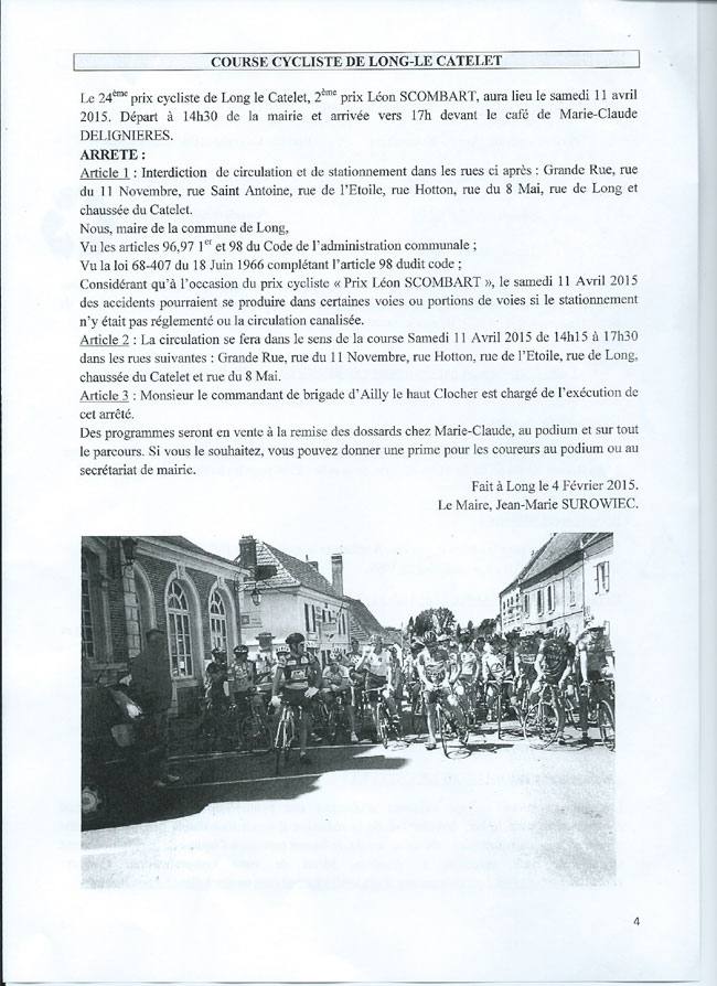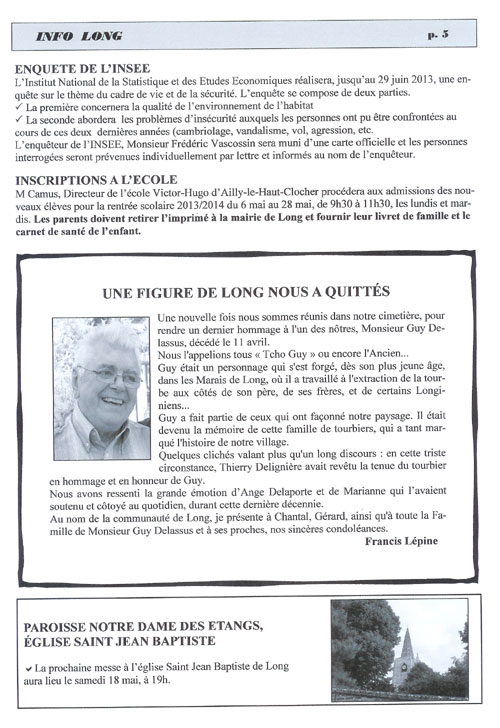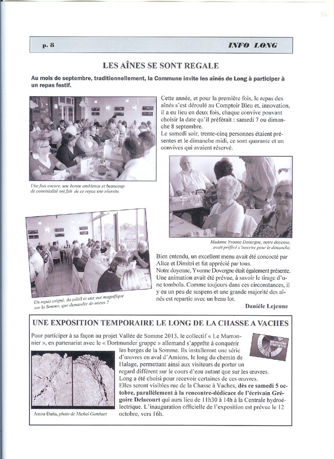 Nous rappelons une nouvelle fois que la divagation des chiens est interdite. Ce sont toujours les mêmes que l’on voit dans les rues de Long, aussi nous demandons à leurs maîtres de bien vouloir faire le nécessaire pour que leur animal reste chez eux... C’est un geste civique. Nous demandons également aux propriétaires de chiens de bien vouloir ramasser les déjections de leur animal (autour de l’église, dans le cimetière, rue Basse d’Abbeville, etc…)
