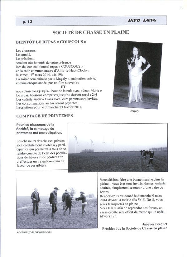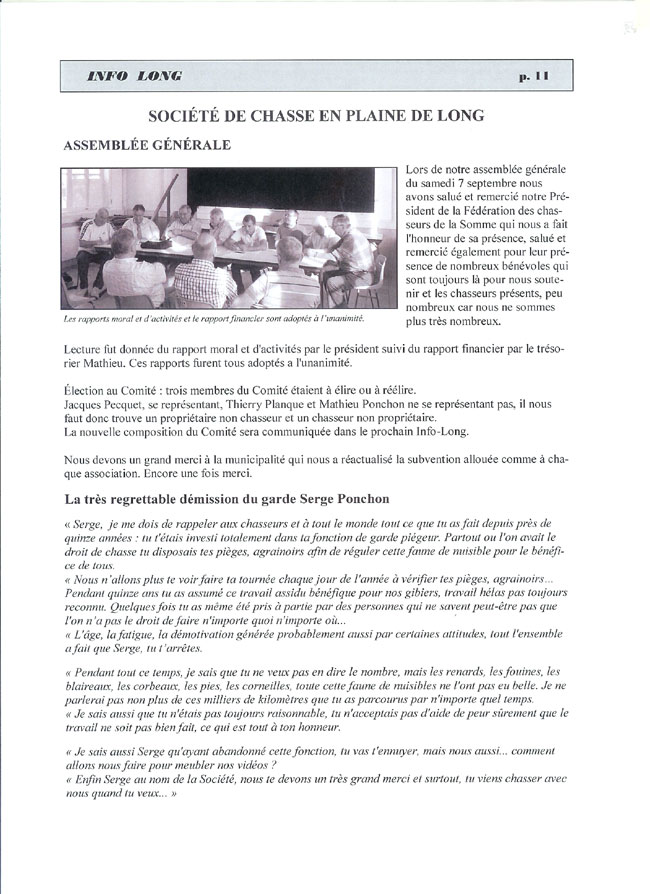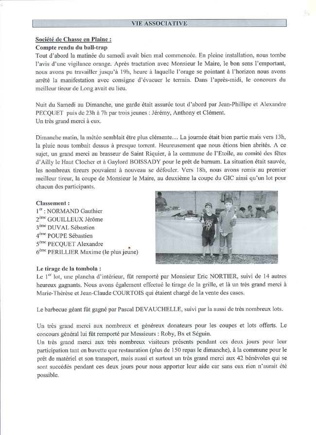 A noter : La Société de chasse en plaine organise son Assemblée générale le 3 juillet 2009, à 19h, salle de la mairie.