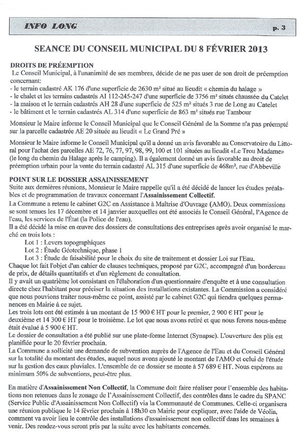 LONG est la 4ème commune du canton et nous sommes classé en 4ème position des coûts pour l'école après les bourgs de Saint-Riquier, Ailly-le-Haut-Clocher et Pont-Rémy). Nous avons donc de nombreux points forts dans la mise en place du projet de la Com de Com. L'étude du cabinet Laurent le rappelle plusieurs fois.