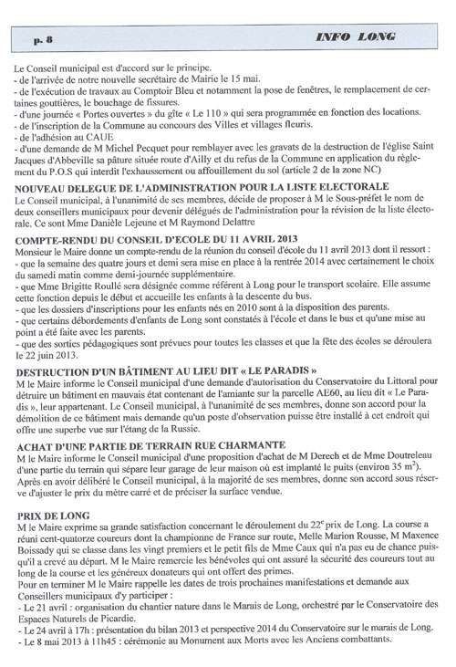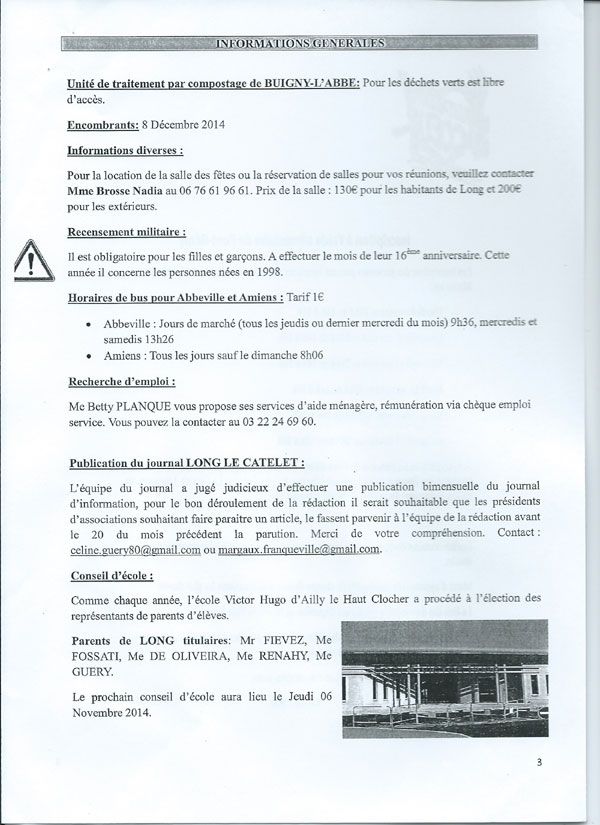 Reste donc le cas de LONG... un cas tout à fait particulier avec toutes ses classes, avec ses bâtiments et la possibilité d'aménagement (cour intérieure de l'école des garçons, du préau de l'école des filles près de la salle, etc… ). LONG compte assez d'élèves pour maintenir ces classes.