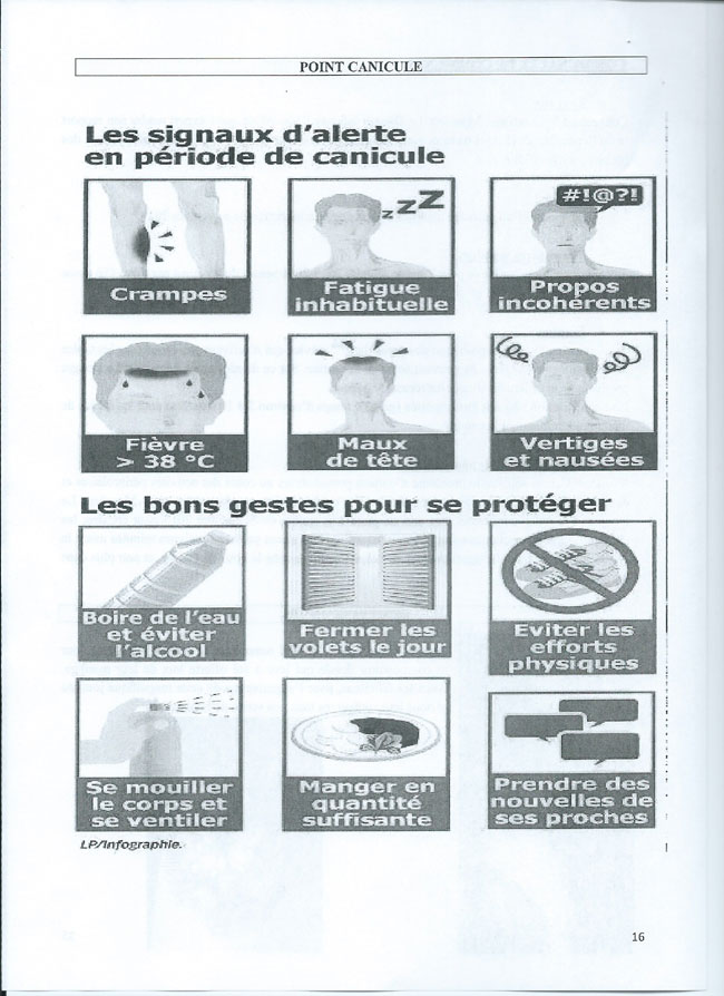 · Evitez les sorties et plus encore les activités physiques ( sports, jardinage, bricolage...) aux heures les plus chaudes.