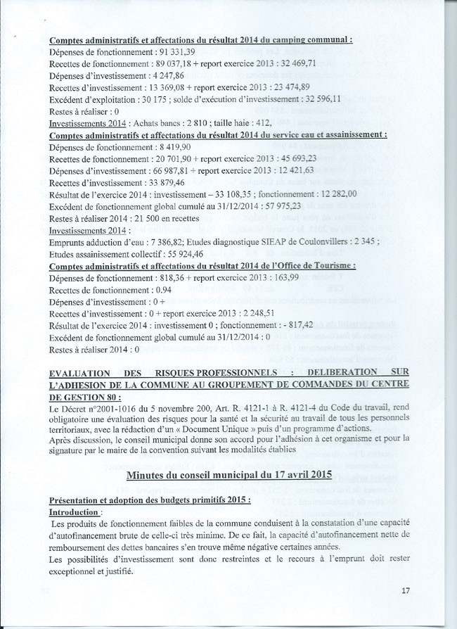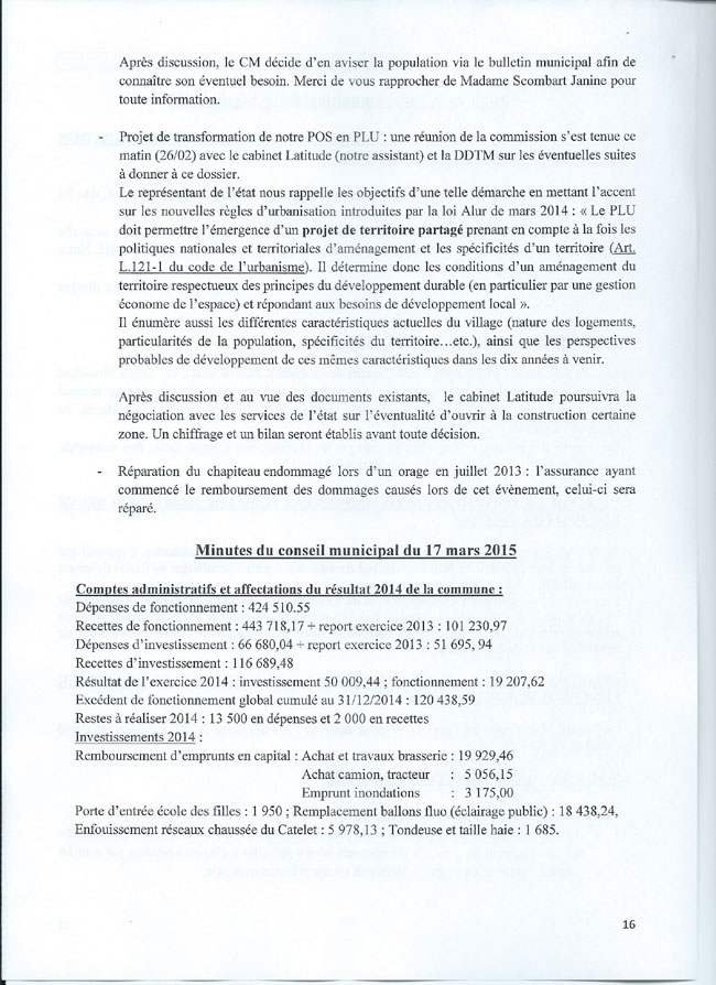 Cette somme a permis également dernièrement de régler la part communale pour l’étude effectuée pour la préservation du captage. Elle servira également à changer le grillage autour du captage et des travaux nécessaires pour la préservation de ce captage le long de la route de l’Etoile. La Commune doit également s’occuper de la toiture du réservoir, du changement d’un réducteur etc…)