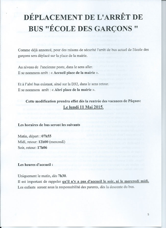Nous vous donnerons des précisions, dans un prochain bulletin, sur les horaires, les prix et l’organisation et le fonctionnement général de la cantine et de la garderie…sans oublier de parler du travail des assistantes maternelles.