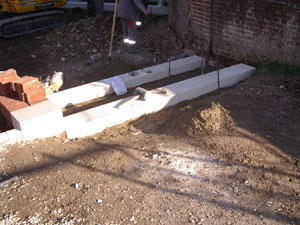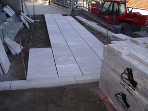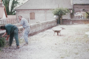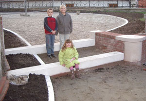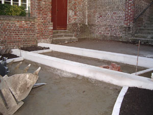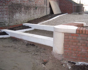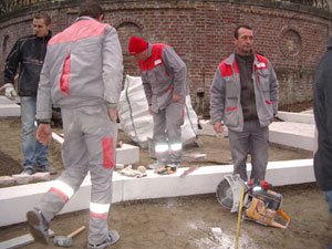 pose des deux marches et du petit muret qui deviendront des sièges pour tous