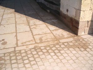 installation d'un dallage devant le clocher qui montre bien cette incidence.