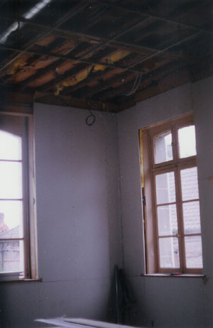 La Commune voulait rénover la Mairie et la rendre plus fonctionnelle. Après étude, il a été décidé de rénover la Salle des fêtes en y ouvrant de grandes fenêtres, en baissant les plafond et en carrelant le sol. Puis une cuisine a été installée à côté et des wc.