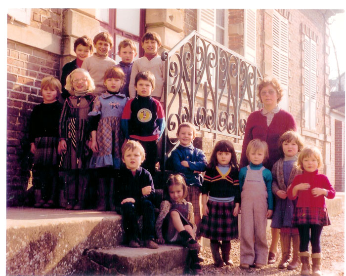 OK En haut de droite à gauche: Monsieur BOUCHON Instituteur, BRINGUET Jean-Baptiste, NORMAND Solange,LAMBERT Monyse, NIQUET Blandine, CARPENTIER Martine, DEGUISNE Anicet, VINCENT Marlène, BEAUVALET Marie-Christine, SAILLY Marie-Cécile, GERVOIS Isabelle, DELIGNIERES Marie-Claude