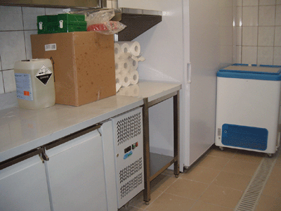 La zone de livraison et réception des matières premières, un local déchet tampon, une chaufferie (chauffage central au fuel), une cave, un espace pelouse avec accès embarcadère,